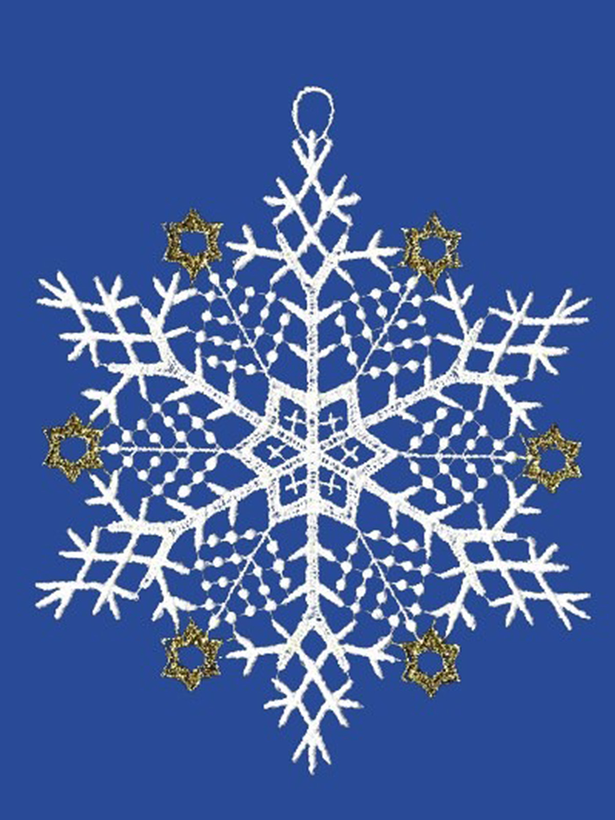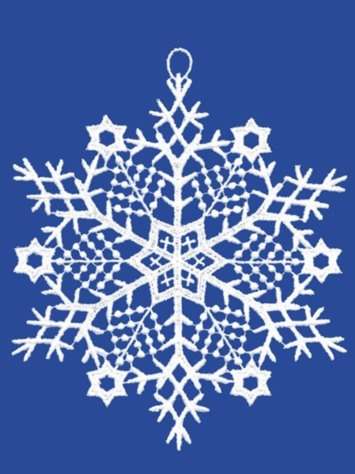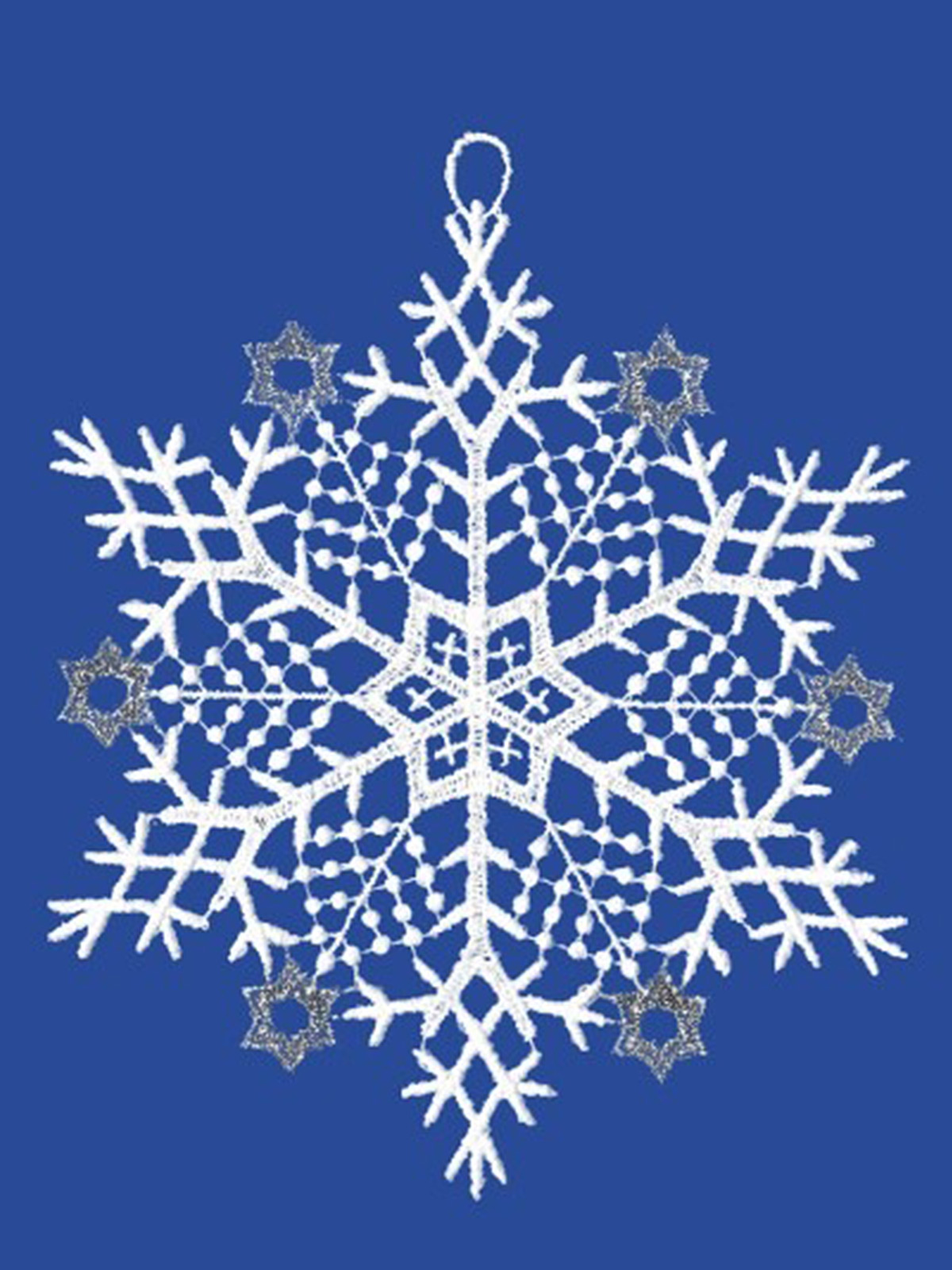 Edles Plauener Spitze Fensterbild Anhänger Schneestern aus Original Plauener Spitze® – 100% Polyester, Made in Germany. Perfekt als Geschenk und Weihnachtsdeko.