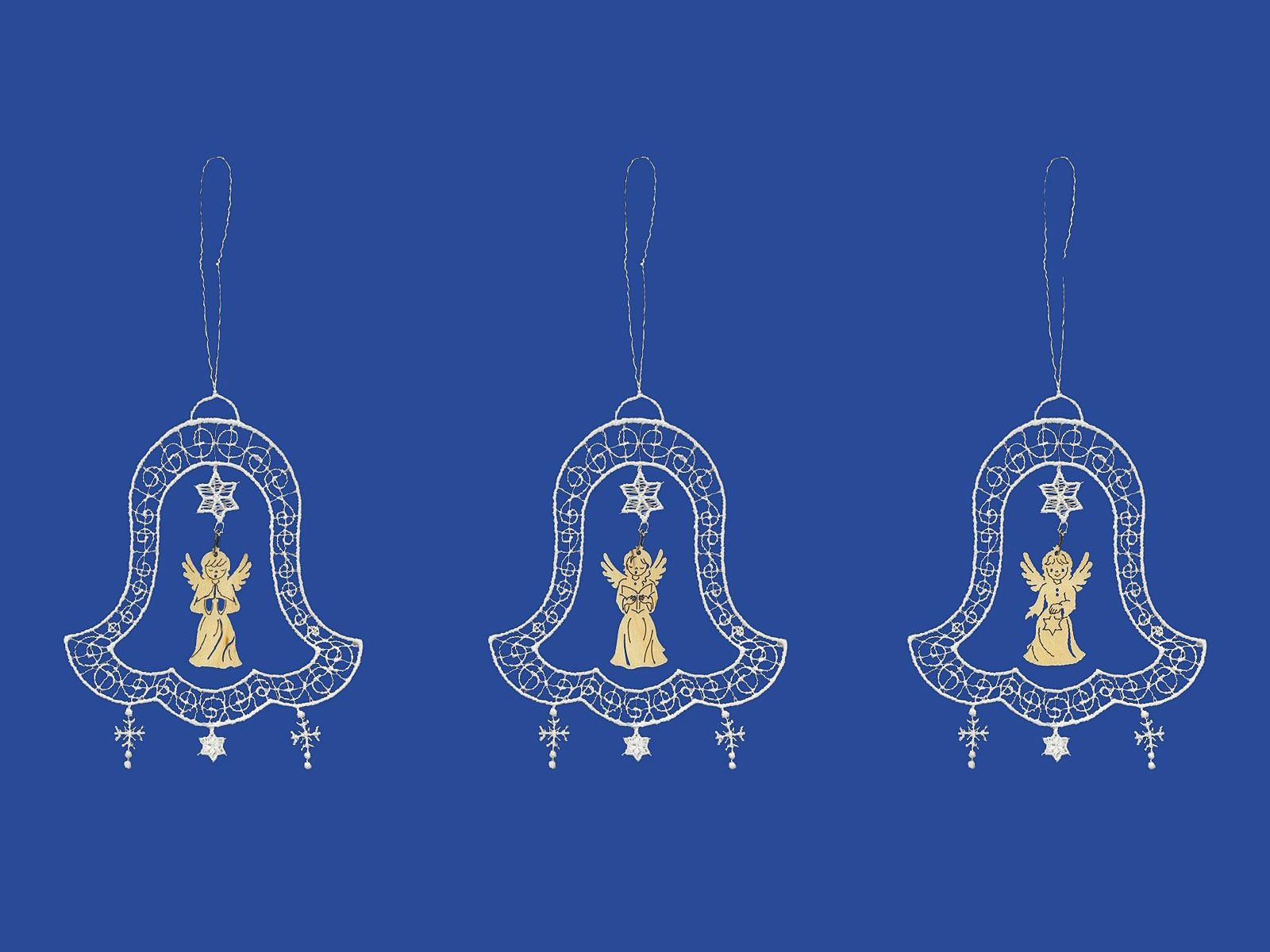 3er-Set Weihnachtsanhänger Glocke mit Engel