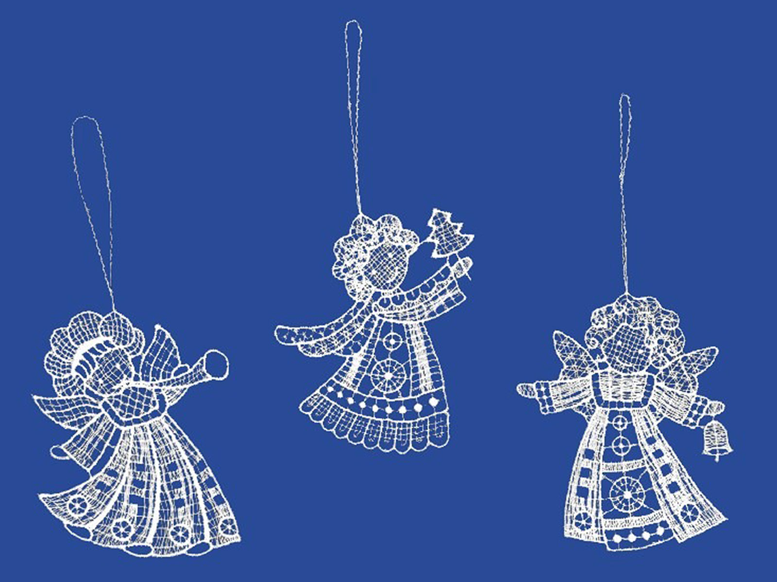 Plauener Spitze 3er-Set Weihnachtsanhänger Engel