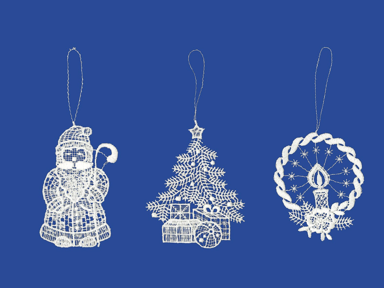 Plauener Spitze 3er-Set Weihnachtsanhänger Weihnachtsmotive