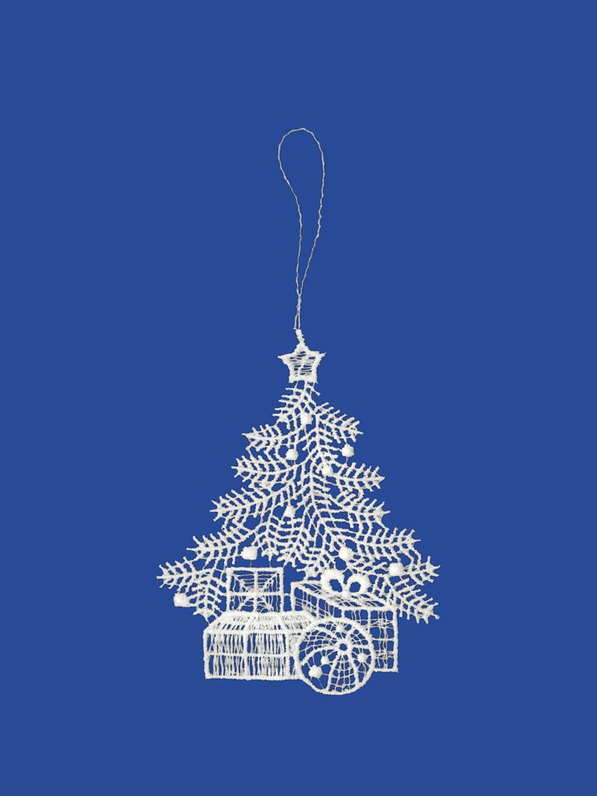 Edles Plauener Spitze 3er-Set Weihnachtsanhänger Weihnachtsmotive aus Original Plauener Spitze® – 100% Polyester, Made in Germany. Perfekt als Geschenk und Weihnachtsdeko.