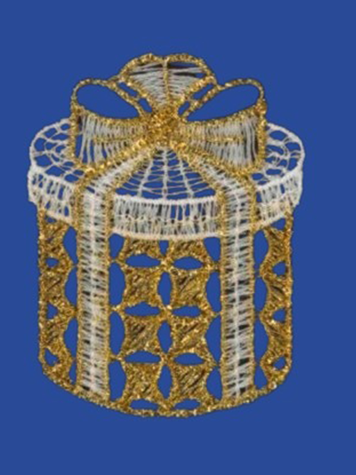 Edles Windlichtdekorationen Hutschachtel aus Original Plauener Spitze® – 100% Polyester, Made in Germany. Perfekt als Geschenk und Weihnachtsdeko.